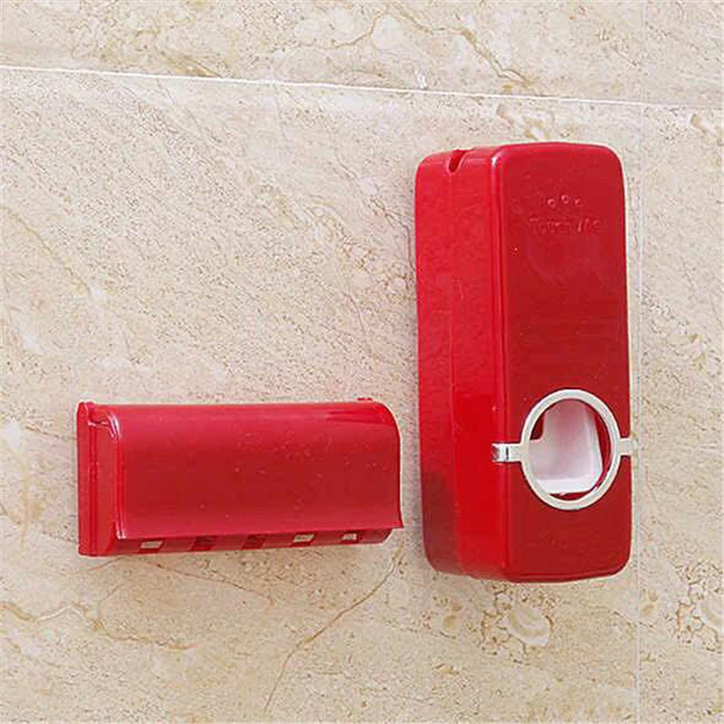 .Gallery of Bathroom Shelves Toothbrush Holder Automatic Toothpaste Dispenser Set 5 Slots Toothbrush Stand Home Wall Mounted Rack