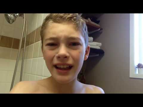 My son takes a soothin yet cold bath for his viewers!